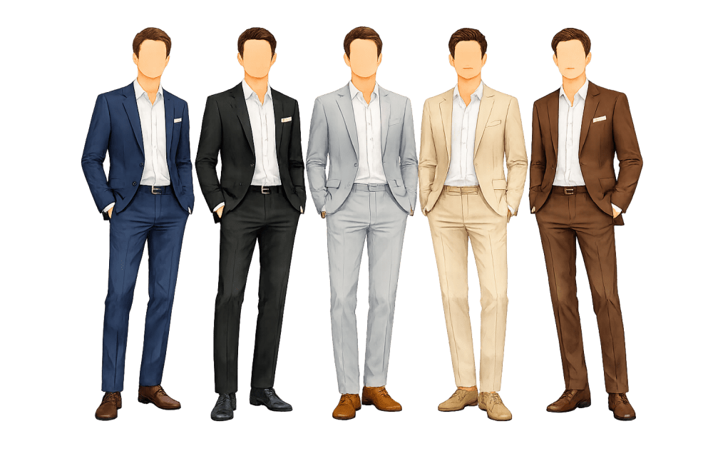 Para eles, sugerimos um visual elegante e leve: calça social ou de sarja, combinada com camisa social e paletó. O uso de gravata é opcional.